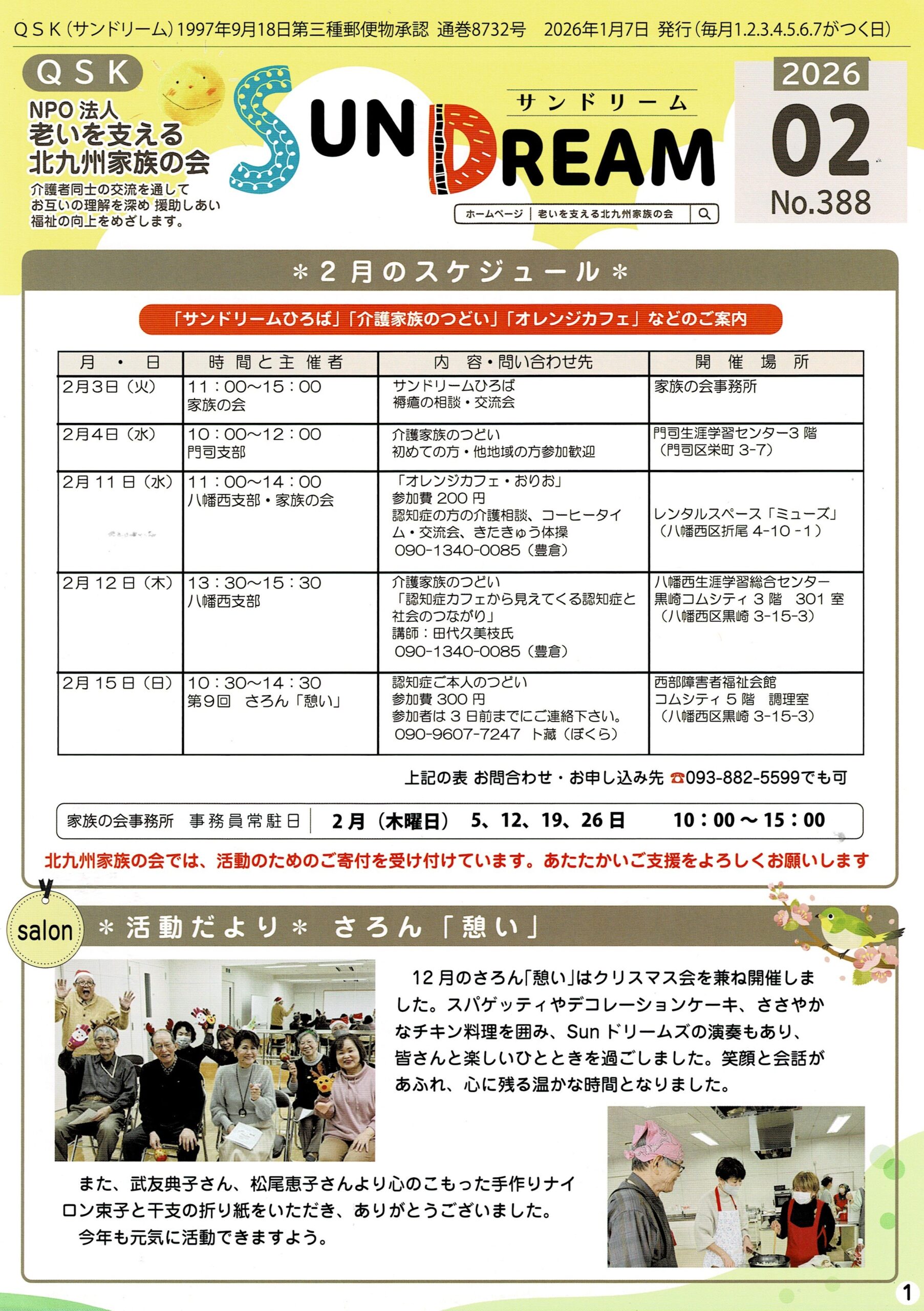 | 郵送 | 〒804-0061 北九州市戸畑区中本町3-10 中本町ビル207 NPO法人 老いを支える北九州家族の会 本部事務所 宛 |